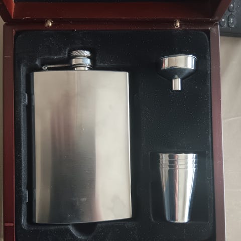 Elegant lommelerke i rustfritt stål, rommer 2,1 dl (7 oz).
