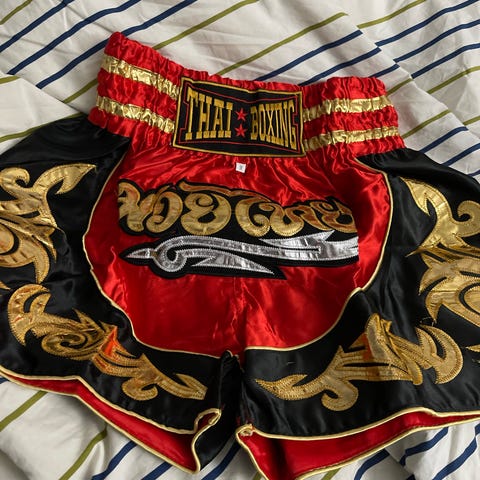 Tuff Muay Thai shorts i størrelse 2XL for unisex. Shortsene har et fargerikt mønster med roser og svaler, og er designet for muay thai.