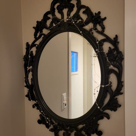 Tøft speil med skrift.
