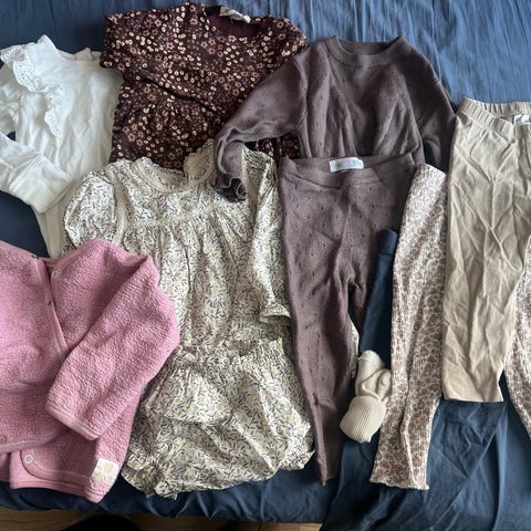 Selger samlet klespakke i str 98 og 98/104. Merker som Newbie, Zara, KappAhl, HM, Lindex