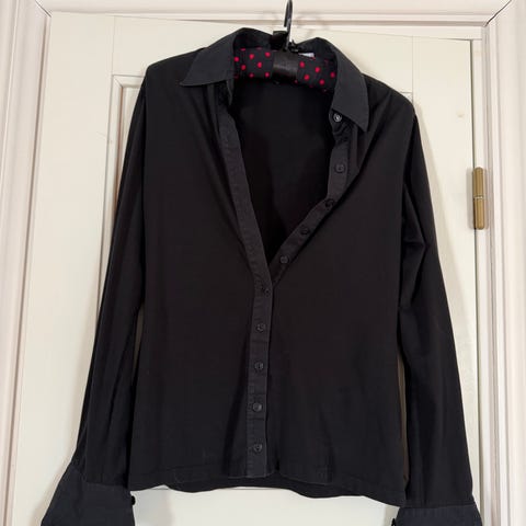 Nydelig bluse med fine detaljer. Trekte knapper på ermer og knappestolpe.
