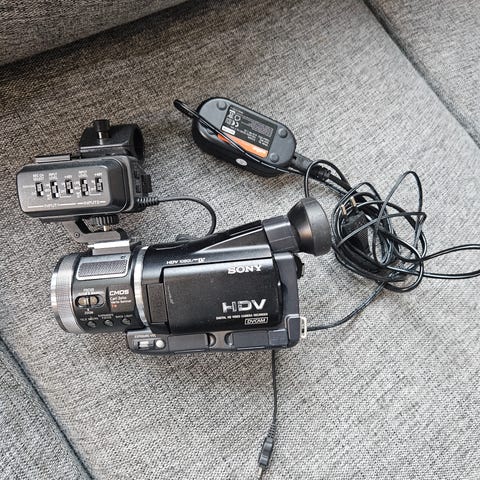 Panasonic NV-GS35 videokamera med Mini DV-format. Utstyrt med 30x optisk zoom og 1000x digital zoom. Kameraet har en roterbar LCD-skjerm for enkel visning. Farge: sølv. Inkluderer batteri og lader. Egnet for opptak av video i standardoppløsning.