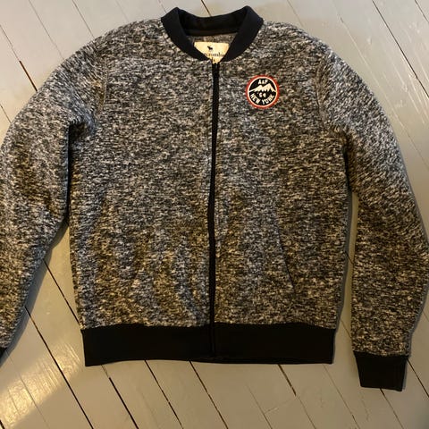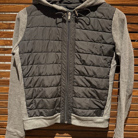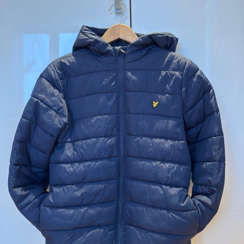 Abercrombie & Fitch navy jakke til jente. Jeg vil si at den er mindre enn 158. Datteren min på 11 år har brukt den. Jakken er tosidig og kan brukes med fluffy rosa side også. Glidelås er litt ødelagt, derfor selges billig - fortsatt mye bruk igjen! 😊