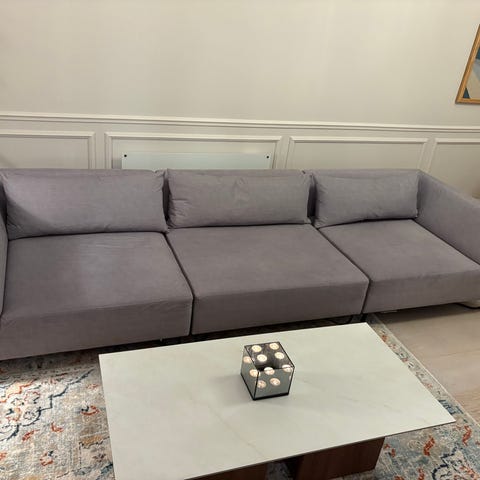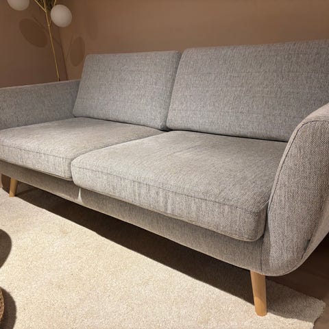 Sofaen er brukt, men i god stand, og vi håper den kan bli brukt i mange flere år. Vi selger den da vi skal omrokkere og kjøpe en litt mindre sofa.