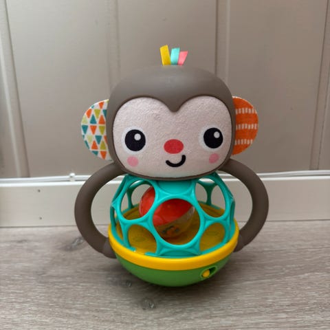 Inkl ape som triller rund m lyd og lys, hengende ape m lyd og musikk, kanin som prater og synger , Brio treleke, rullende ball m lyd og lys mv. alt påent og lite brukt!