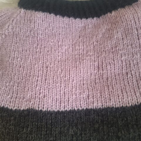 Varm strikkegenser i en nydelig blåfarge. Kjøpte den på bruktbutikk og den mangler merkelapper. Materialet kjennes ut som ull, men jeg er ikke sikker. Passer str. M/oversized S.