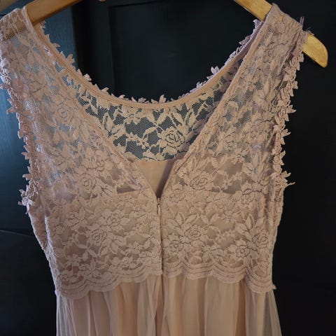 Selger en elegant kjole fra ZARA i sterk rosa farge med blomsterblonde.