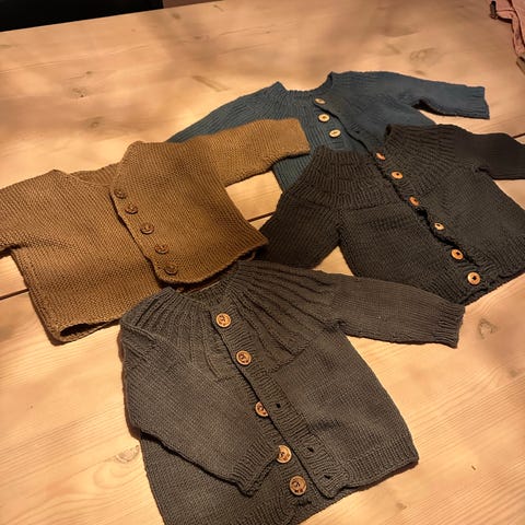 Grønne store knapper i fløyel og grønt mønster på ermene. Nesten ikke brukt