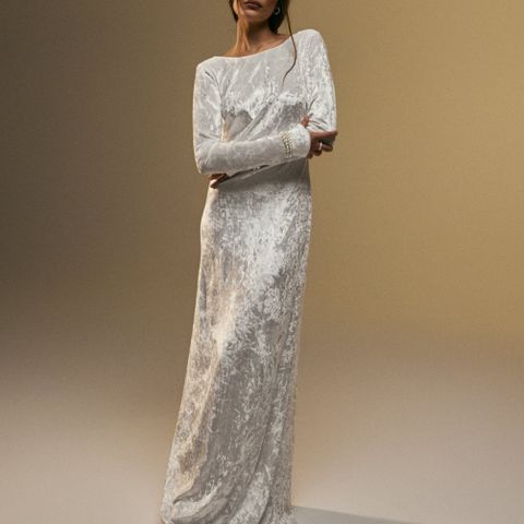 Nydelig, enkel og elegant kjole som jeg brukte i mitt eget bryllup (men i en str mindre, så denne er helt ubrukt). Sitter utrolig fint og har ingen knapper eller glidelåser. Stretch i kjolen som gjorde den behagelig fra morgen til kveld :)
