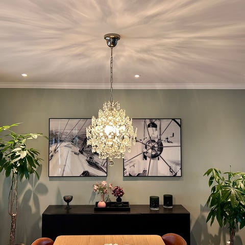 Nydelig byrydens taklampe som er veldig lite brukt.Lampen er i metall og glass.