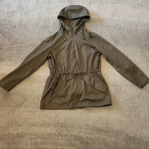Stilig jakke i fin grønnfarge. Strikk bak, sitter pent på. Kan sendes med fiks ferdig eller etter nærmere avtale.