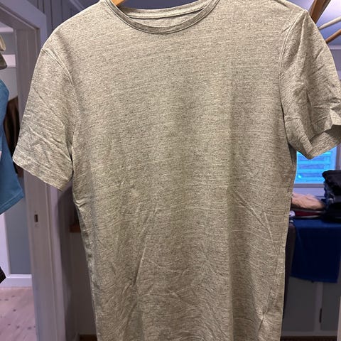 H&M T-skjorte for herre i størrelse S. Fargen er blå og materialet er bomull. T-skjorten har en enkel design og passer til daglig bruk.