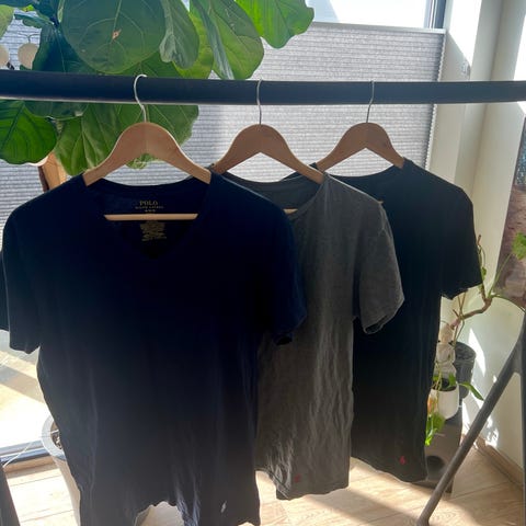 To t-skjorter selges samlet for 1400. Koster 1249 pr stk. Den blå er brukt og vasket en gang, den hvite er ubrukt.