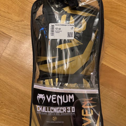 Venum boksehansker i rød farge laget av syntetisk lær. Hanskene har borrelås for justerbar passform og er egnet for både menn og kvinner. Designet for bruk i boksetrening og kampsportaktiviteter.