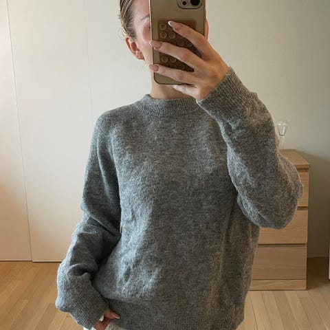 Lett og luftig hullstrikket genser fra ZARA i grå farge, i størrelse L på lappen, men den er veldig små i størrelsen hvis du vil ja mer avslappet passform, så passer str. S fint.