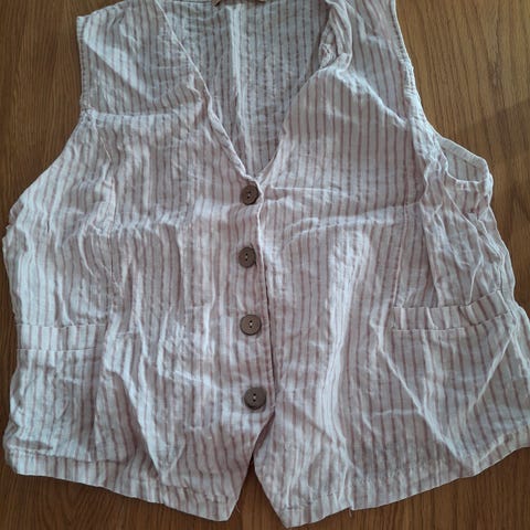 Vest fra HM i størrelse L. Stoffet er halvt om halvt lin og viskose.