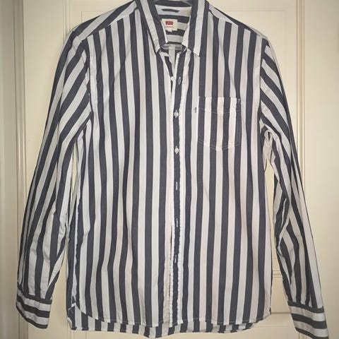 Levi's Lakewood skjorte i blå farge, størrelse M. Laget av 100 % bomull. Langermet modell med knappelukking og to brystlommer med klaff. Passer for menn.