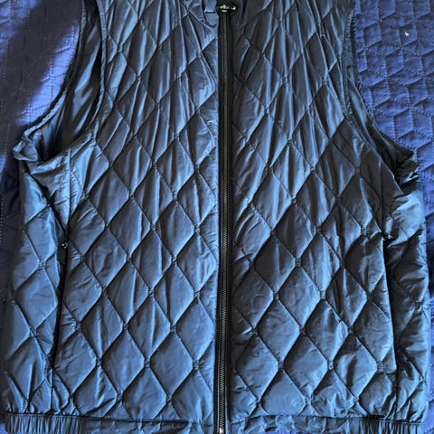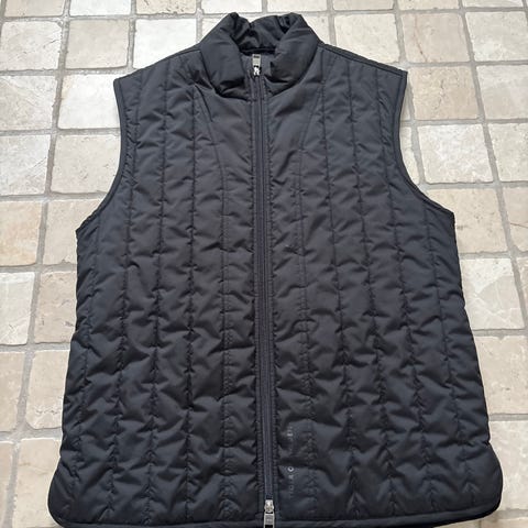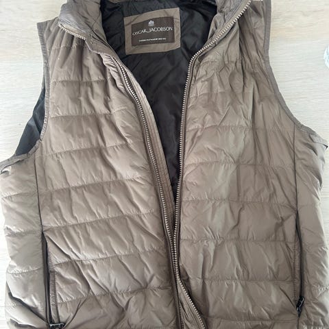 Oscar Jacobson liner vest for menn i størrelse 50. Vesten er blå / navy og har en quiltet design med glidelås foran, som kan åpnes i begge ender. Den er laget for utendørs bruk (vår og høst) og passer til ulike anledninger der et ekstra lag er nødvendig.