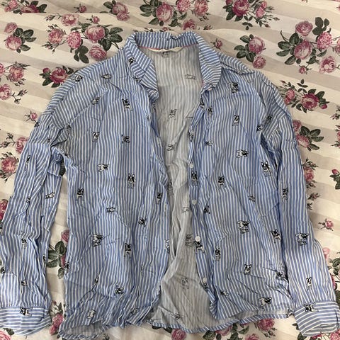 H&M T-skjorte i svart farge, størrelse 158, designet for jenter. Laget av bomullsmateriale med kortermet design og trykk foran.