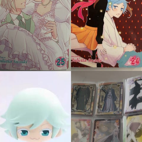 Jeg selger blant annet disse Rent-A-Girlfriend (og rent-a-(really shy)-girlfriend) anime statuettene, og manga utgaver 14 + 20-24 fra følgende serie samlet.