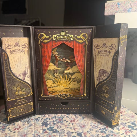Cilla Conway The Shimmering Veil Tarot kortstokk med illustrerte tarotkort. Inneholder en bok og en komplett kortstokk. Kortene er designet for bruk i tarotlesning og inneholder kunstneriske bilder. Leveres i eske for oppbevaring.