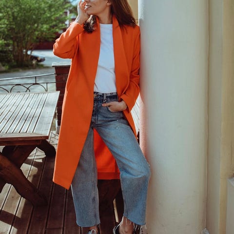 Dorit Jakke Oransje er en lett og deilig kåpe i en helt fantastisk frisk oransje farge. Kåpen lukkes med knytebelte i livet og har stikklommer i sidene. Delvis fôret.
