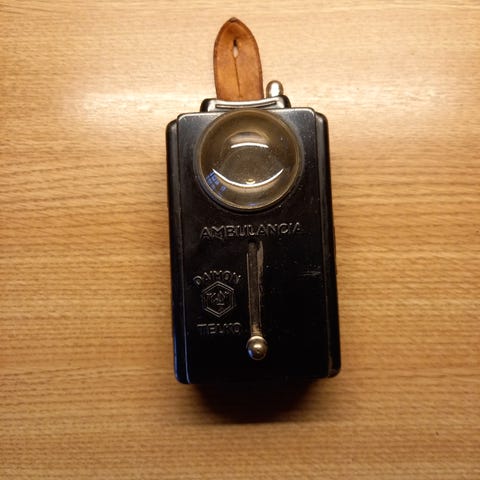 Metallkropp, glasslinse foran, og malingen er i svært ren stand; kroppen har ingen alvorlige riper eller rust.