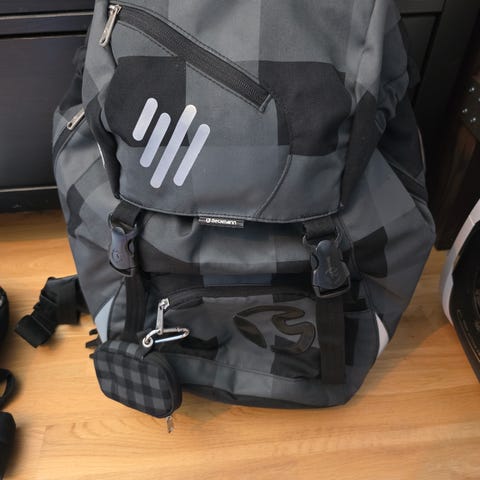 Pent brukt Beckman ryggsekk, penal og flask selges samlet