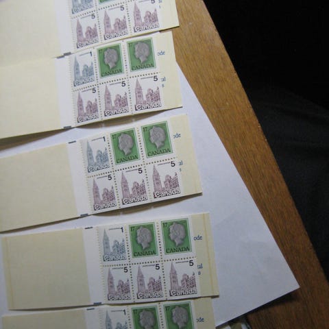 Seks originale Souvenir Collection of the Postage Stamps of Canada-bøker fra årene 1995–2000.