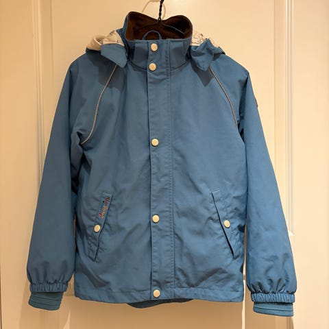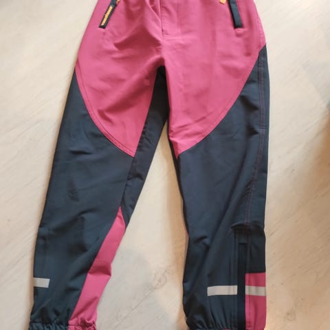 Jakke og bukse med seler i brunrosa farge fra Tinytrolls. Selene kan justeres med borrelås, evt tas av hvis en vil det. Mykt for. Høy vannsøyle. Fremstår som nytt.