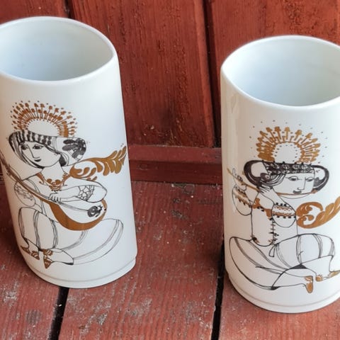 Denne originale vintage vasen ble produsert på 1970-tallet i Tyskland av Rosenthal. Det er laget av porselen og har en fantastisk grågyllen illustrasjon av Björn Wiinblad, som er en del av Rosenthal Studio Line-serien. Bunnen er merket med Rosenthal, Tyskland, og illustrasjonen med signaturen til designeren av dette fantastiske produktet.