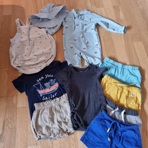 Sommerklær som enten kun er vasket klar til bruk eller minimalt brukt. Kjøpt nye av oss og da brukt av 1 barn. Røyk og dyrefritt hjem.