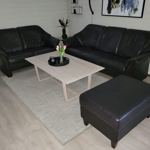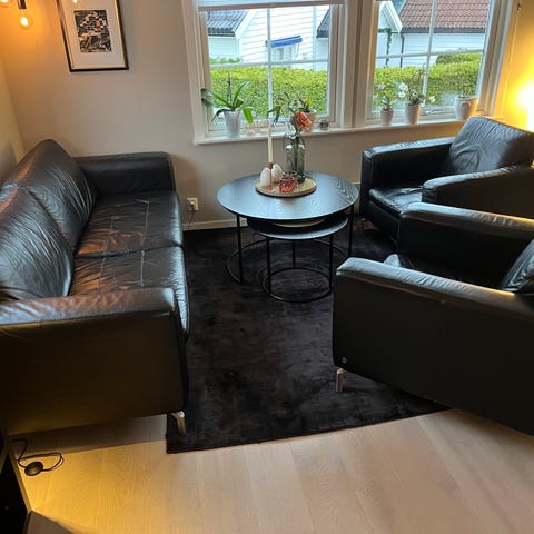 Meget pent brukt klassisk skinnsofa til salgs. NB! 3 seter og 1 seter er solgt! 2 seter selges for 3000,-