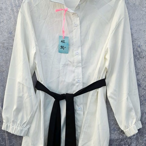 KappAhl skjorte i størrelse M for kvinner. Skjorten er hvit og laget av 100% viskose. Den har korte ermer, knappelukking foran og to brystlommer. Passer til daglig bruk og kan kombineres med ulike antrekk. Fargen er ikke kritthvit, men går mot beige.