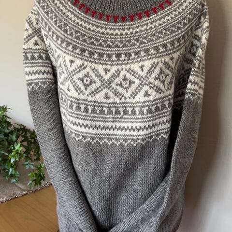 Pent og lite brukt trøye i merinoull fra Kari Traa. Størrelse XL, men litt liten i størrelsen så den tilsvarer nok mer en L.