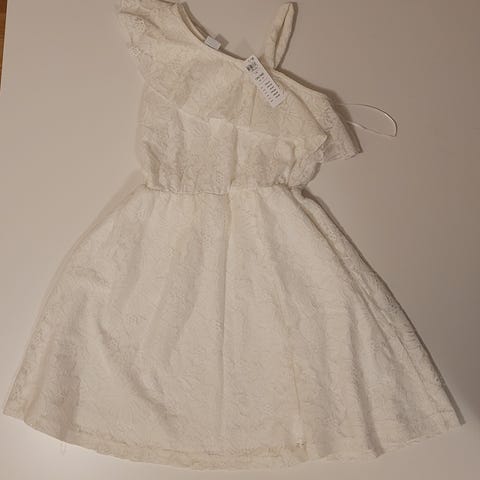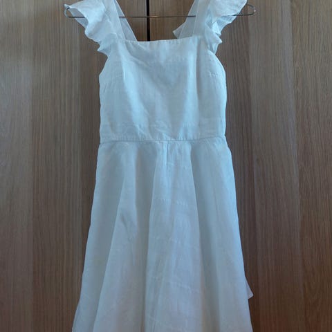 Hvit kjole med gullbånd i midjen.