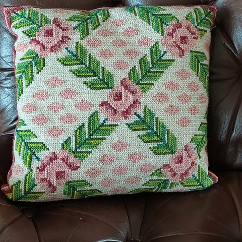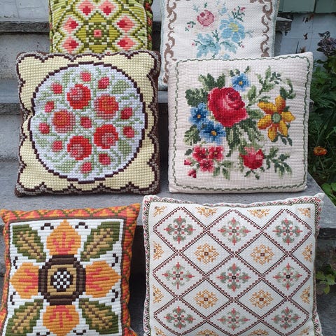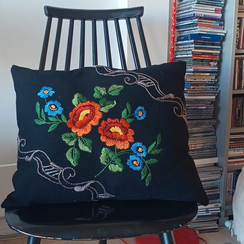 Dekorativ håndknyttet pyntepute fra 70-tallet. I finfin vintage stand