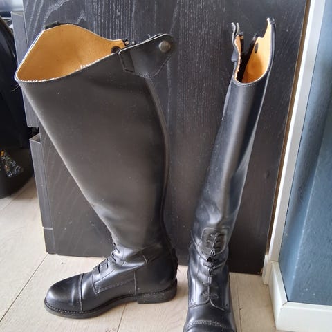 Ridestøvler i lær fra mascot, størrelse 38. Har noe slitasje bak ved glidelås, og trenger seg en puss, men kan fint brukes mer.