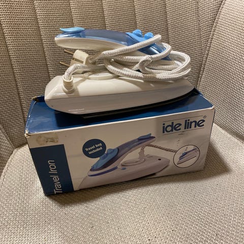Praktisk, kompakt reisestrykejern med sammenleggbart håndtak og justerbar temperatur