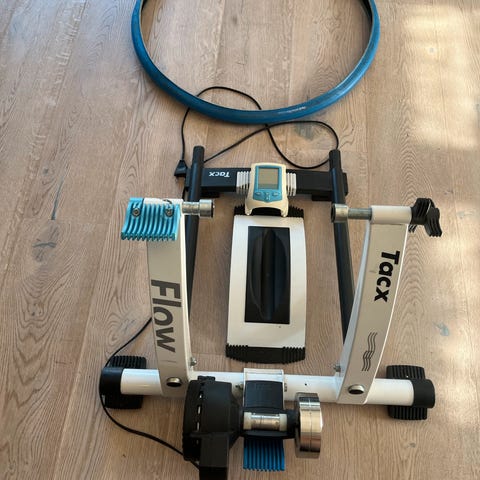Selger denne sykkelrullen fordi den er lite brukt og tar opp plass. Har brukt den sammen med appen og en IPad til å se ruten jeg følger. Går an å få tak i mange forskjellige ruter. Ny pris er over 3000kr. Kan selvsagt hentes.
