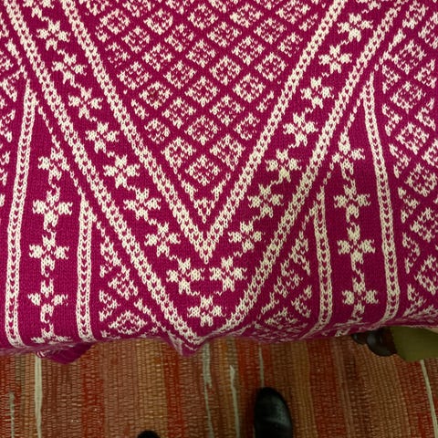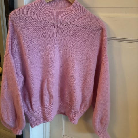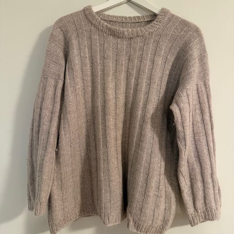 Hjemmestrikket kabelstrikk, selges da den er for liten. Jeg bruker stortsett S og noen ganger XS. Denne er etter min mening en liten XS eller en XXS. Se bilder for mål.