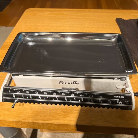 Har vært brukt som fruktfat de siste åra, men fungerer også. Hvor nøyaktig tør jeg ikke å si.