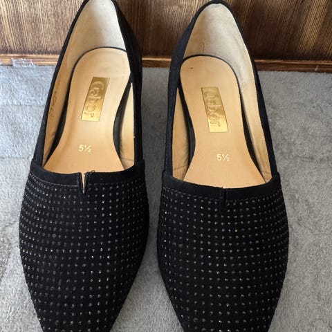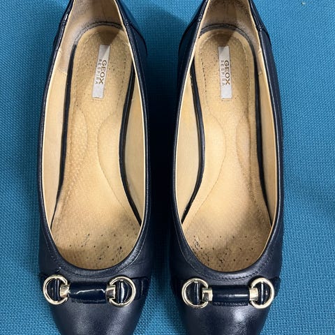 Geox pensko i størrelse 38 for dame. Skoene er laget av sort skinn med en blank finish og har snøring. Designet har klassiske detaljer med brogue-mønster. Egnet for formelle og semi-formelle anledninger.
