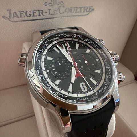 Lufter en fantastisk Jaeger-LeCoultre Master Chronograph for salg. Dette er en klokke JLC lanserte i 2017 for å feire 25-årsjubileet til sin anerkjente Master Control-kolleksjon, og det er nå en utgått (discontinued) modell. Referansenummer Q1538530. Det er ikke mange av disse der ute, så her har du en ganske unik klokke!