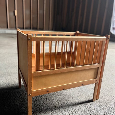 Vugge i hvit med dekorative kanter