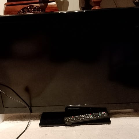 En LED-stripe er ødelagt, noe som skaper en skygge øverst i midten på bildet. Kan repareres selv eller profesjonelt. Ellers fungerer TV-en som den skal.