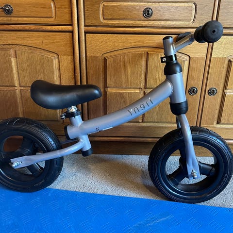Puky Løpesykkel i grønn farge, designet for barn. Sykkelen har et justerbart sete og håndtak, og er laget for å hjelpe barn med balanse og koordinasjon før de lærer å sykle med pedaler.