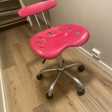 Elsker denne og har brukt den som kontorstol, men har ikke plass til den lengre. Perfekt til å ha som en liten statement stol for arbeidsbord, sminkebord el.