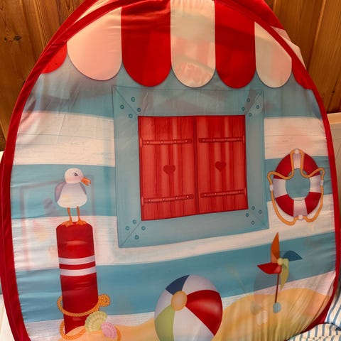 Pop-up telt fra Claes Ohlson. Grå med stjerner. Fra to år.