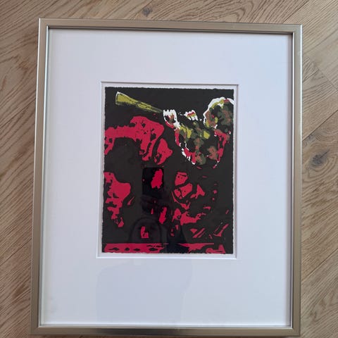 Litografi av Håkon Bleken. Spor. Innrammet